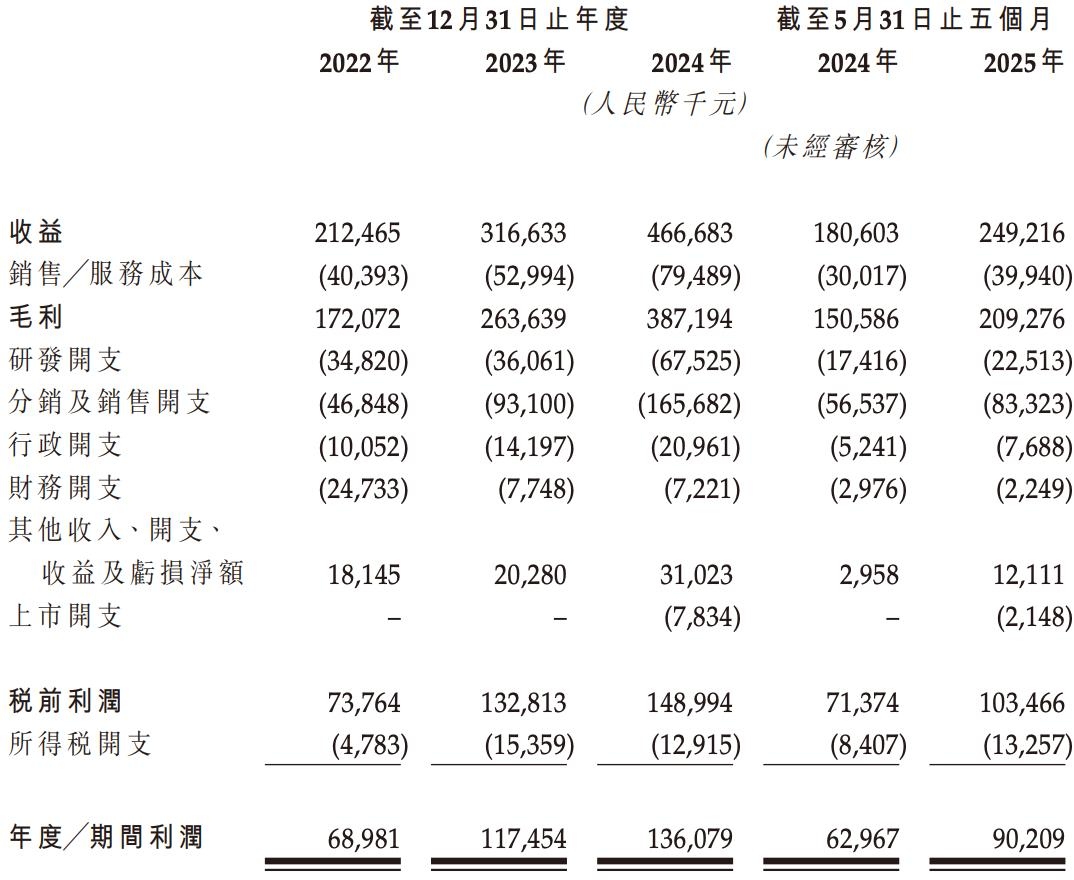业绩方面,2022年、2023年、2024年度及截至2025年5月31日止五个月(前五个月),海西新药的营收分别约为2.13亿元、3.17亿元、4.67亿元和2.49亿元,净利润分别约为6898.1万元、1.17亿元、1.36亿元和9020.9万元。