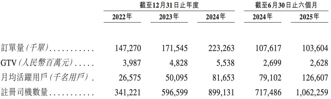 招股书显示,享道出行2025年上半年的网约车服务收入约为22.98亿元,同比减少5.4%,主要由于完单量减少。与之对应的是,享道出行2025年上半年的订单量约为1.036亿单,GTV约为26.28亿元,均较2024年同期有所下降。