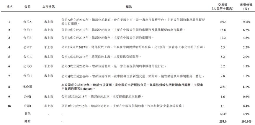 根据弗若斯特沙利文的资料,2024年,以交易总额(GTV)计,享道出行在国内网约车平台中排名第五(前五大网约车平台的市场份额超过85%)。以完单量计,该公司在上海市网约车平台中排名第二。