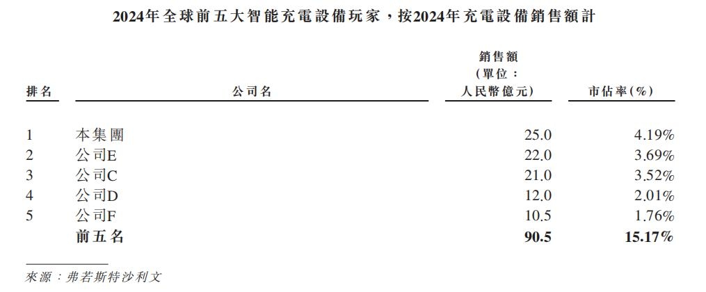 从招股书给出的行业数据看,充电设备环节的集中度并不低。招股书引用的弗若斯特沙利文数据显示,万帮数字能源在全球智能充电设备市场的份额,2024年市占率为4.19%。