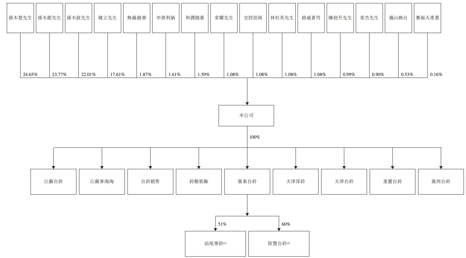 根据弗若斯特沙利文的资料,于2024年按收入计,台铃电动车(台铃科技)在全球电动轻型交通工具市场位列第三,市场份额约为5.2%;按2024年电动两轮车的收入计,台铃电动车在中国内地排名第三,市场份额约为12.7%。