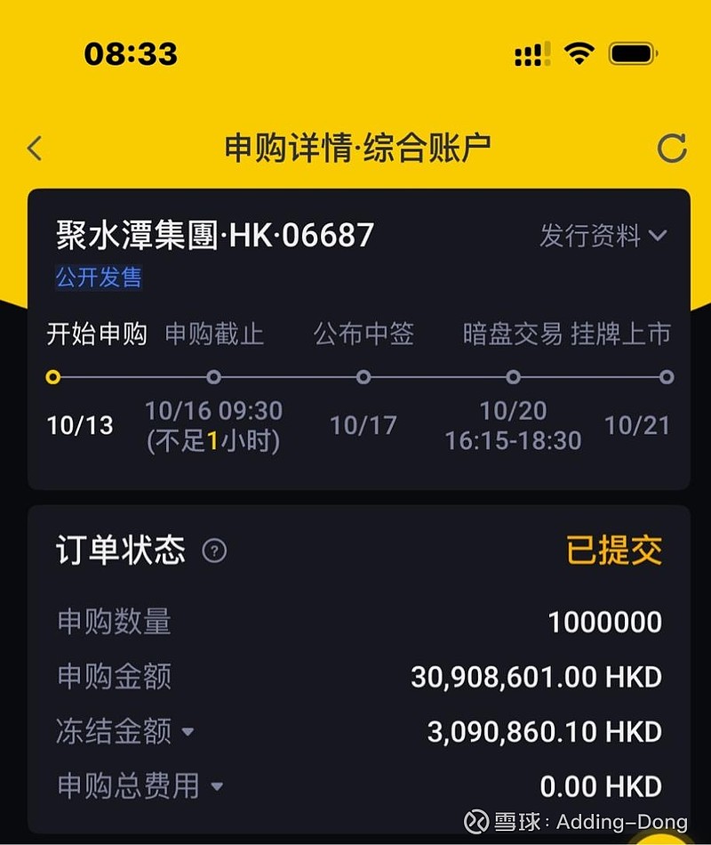 $聚水潭(06687)$ 三花智控002050,港股新股申购热情高涨,不得已追加申购额度,海外卷商融资不收利息,且不收任何申购费用。三花智控昨日44元清仓的资金调配出来当新股申购统一购买力,增加融资新股额度。这个中签率还行的话,估计暗盘交易后可能有10万收益。这个无风险套利还是不错的。小潭新股申购融资热情很高,1989亿。中签率要下调了。