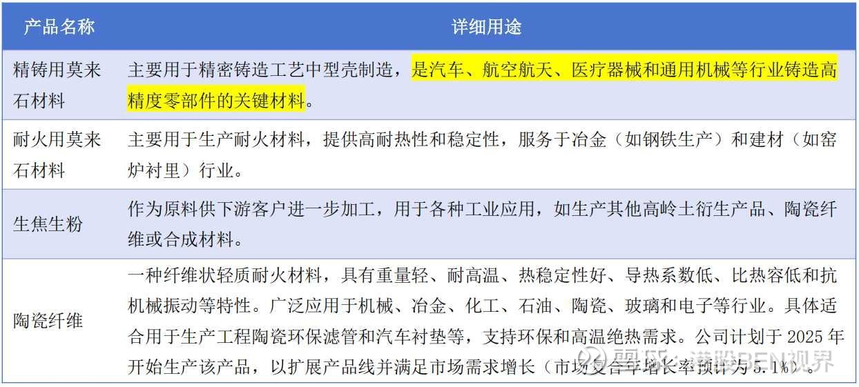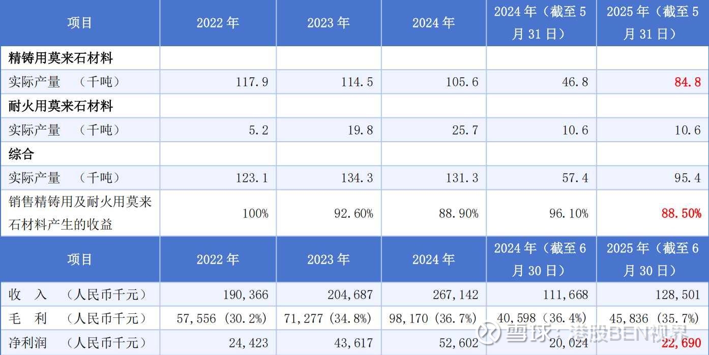 金岩高岭新材同时开展多元化策略,核心产品精铸用及耐火用莫来石材料的收益占比从2022年的100%逐年减少至2025年的88.5%。2023年开始销售生焦生粉,2024年前5个月毛约200万提升到2025年上半约530万,销售收入显著增长。