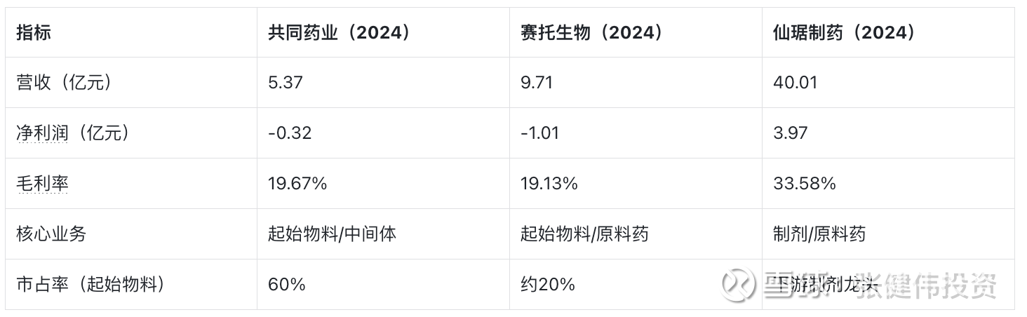 赛托生物:营收规模更大但亏损更严重,与共同药业在起始物料领域直接竞争。