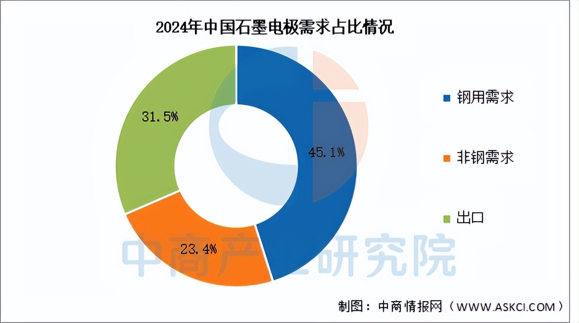 2024年石墨电极总需求为92万吨,其中钢用需求为41.5万吨,占比达45.1%。非钢需求21.5万吨,占比达23.4%。出口约为29万吨。