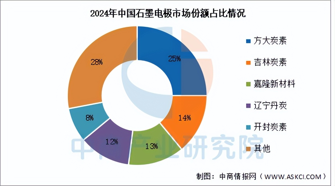 目前,国内石墨电极头部企业集中度较高,前五企业市场份额合计占比超过70%。其中,方大炭素排名第一,市场份额达25%。