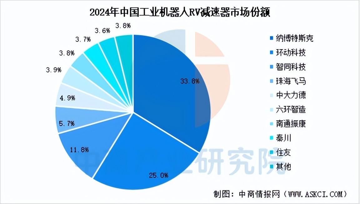 RV减速器主要用于重负载部位,长期由日本纳博特斯克垄断(市占率超30%)。国产替代取得突破,环动科技等国内企业市占率达25%,已进入第一梯队,但在使用寿命和一致性方面仍在持续追赶。