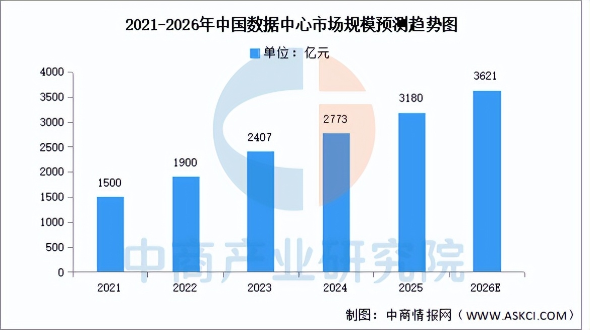 受新基建、数字化转型及数字中国愿景目标等国家政策促进,我国数据中心市场规模持续高速增长。中商产业研究院发布的《2025-2030年中国数据中心建设市场需求预测及发展趋势前瞻报告》显示,2024年中国数据中心市场规模约为2773亿元,同比增长26.68%,2025年约为3180亿元。中商产业研究院分析师预测,2026年中国数据中心市场规模将达3621亿元。