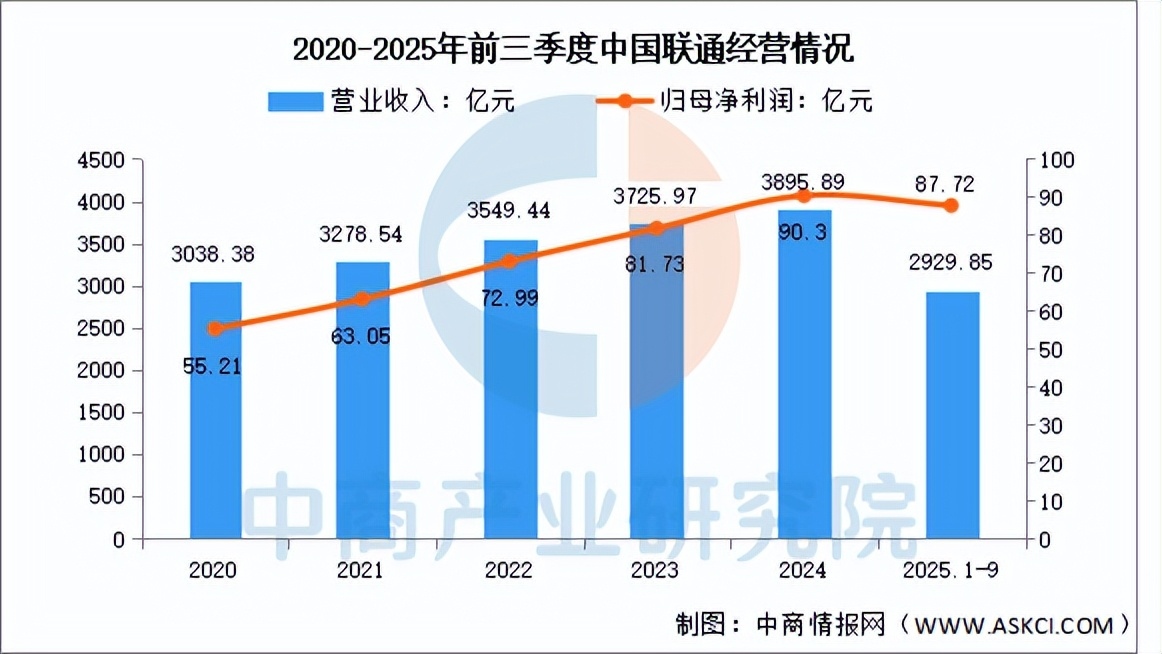2025年前三季度实现营业收入实现营业收入2929.85亿元,同比增长0.99%;实现归母净利润87.72亿元,同比增长5.21%。2025年上半年主营产品包括宽带及移动数据服务、数据及其他互联网应用收入,营收分别占整体的38.49%、27.48%。