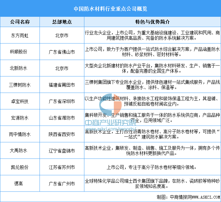 我国防水材料行业资源持续向头部企业集中,东方雨虹、科顺股份、北新防水等上市公司凭借资本、品牌和产能优势,市场份额不断扩大。