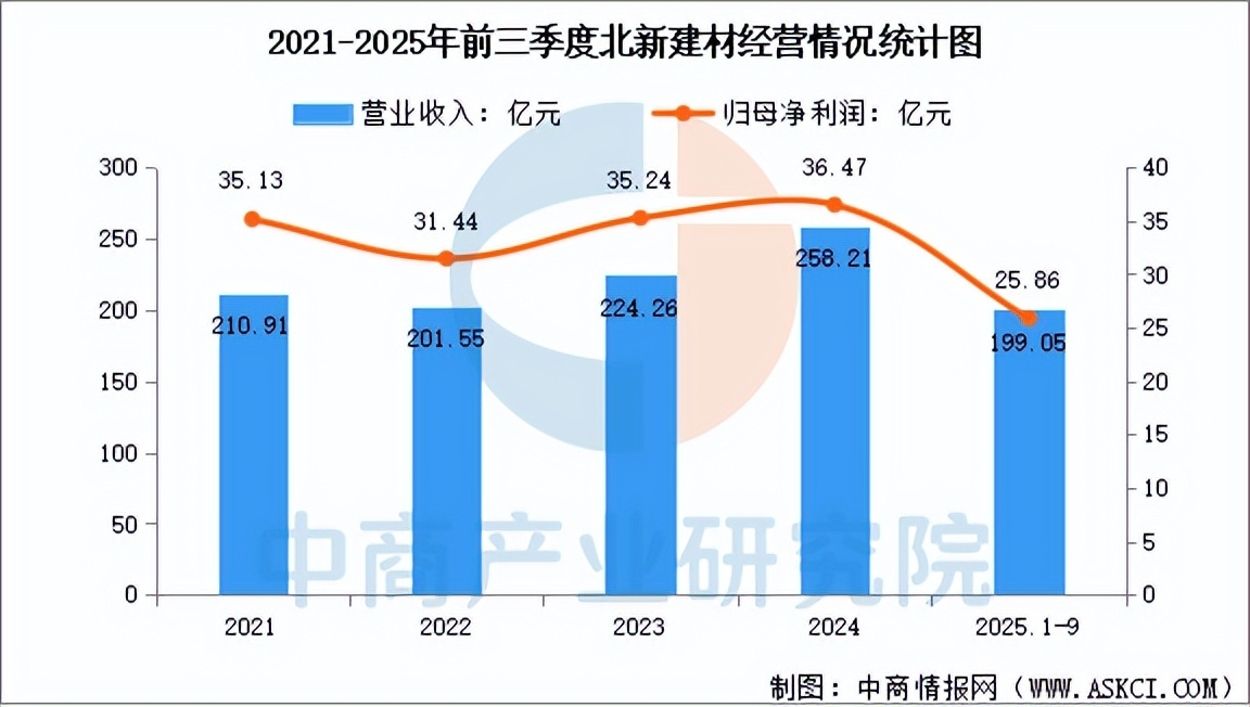 北京东方雨虹防水技术股份有限公司已形成以主营防水业务为核心,民用建材、砂浆粉料、建筑涂料、节能保温、胶粘剂、管业、建筑修缮、新能源、非织造布、特种薄膜、乳液等多元业务为延伸的建筑建材系统服务商。2025年前三季度,东方雨虹实现营业总收入206.01亿元,同比下降5.06%,归母净利润8.1亿元,同比下降36.61%。2025年上半年,公司防水材料收入94.59亿元,占比69.71%。