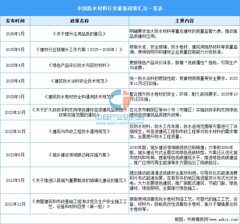 中国防水材料的国家政策正围绕“安全、绿色、耐久”的核心目标,以强制性国家标准和“好房子”建设为两大抓手,推动行业转型升级。以下是相关政策的梳理: