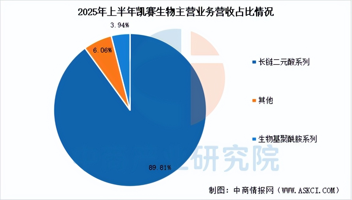 2025年前三季度,凯赛生物主营收入25.45亿元,同比上升14.9%,归母净利润4.51亿元,同比上升30.56%。分产品来看,2025年上半年,公司长链二元酸系列收入占比89.81%,生物基聚酰胺系列收入占比3.94%。