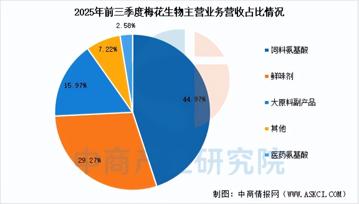 梅花生物长期专注于氨基酸领域的技术攻关与产业化落地,已构建涵盖赖氨酸、苏氨酸、缬氨酸、味精、黄原胶等多种氨基酸及多糖的多产品体系,具备横跨饲料、食品、医药等多个终端市场的供应能力,形成技术与成本优势并重的产业格局。