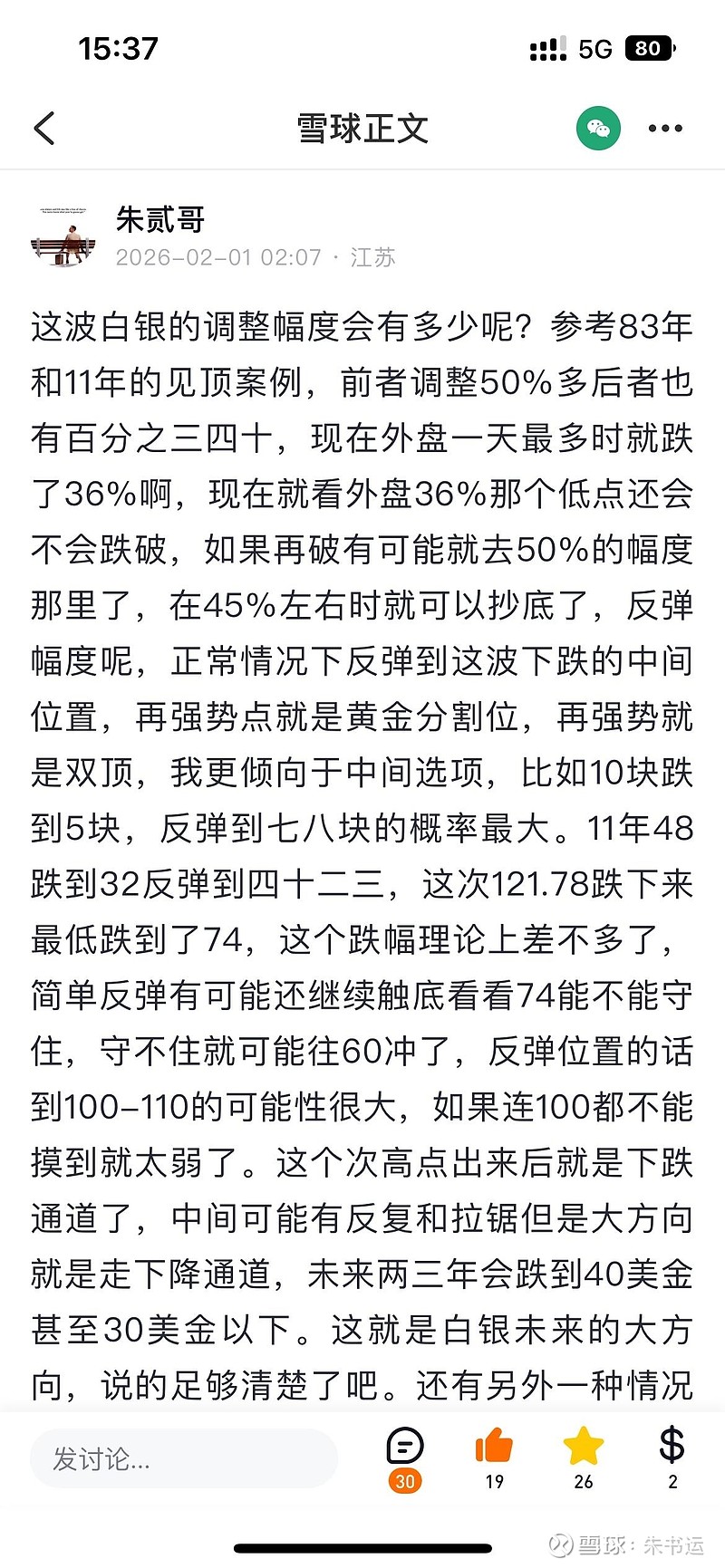 截止到现在,白银都是在按我预期的方向和节奏在走,或许会有细节上的误差,未来大方向大概率也会按我的剧本演绎,其实并不是我的剧本,是市场固有的规律。大道至简,常识即真理。$白银ETF-iShares(SLV)$ $白银2X做多-ProShares(AGQ)$ $SZL(SZL)$