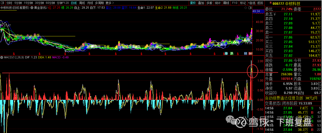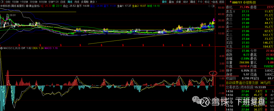 中核科技,不知道大家有没有注意到无论日级别还是周级别,macd创了10年来历史最高数值,这是主升的表现,享受过程。