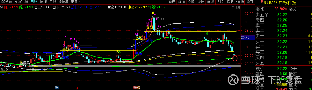 中核科技就如此,已经洗下了日生命位置,距离下轨+年线双支撑。想博短线反弹拉低成本的,可在该位置附近做短线的低吸高抛。