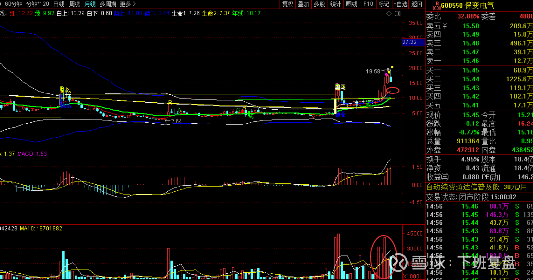 保变电气,月级别的财富状态非常漂亮。如周级别财富不消失,反身向上的话,不久就会企稳,甚至准备上攻;反之周级别财富消失,会在周绿线附近震荡一段时日,而后再次向上。
