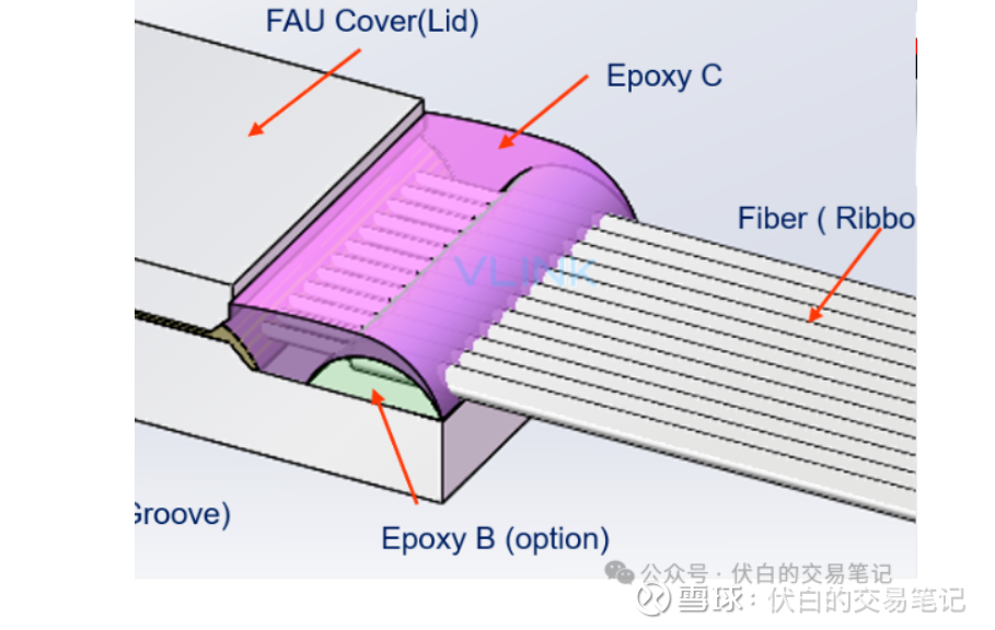 其核心是将光纤阵列与基板支撑结构分离,应用于CPO封装体外部,提升可维护性。