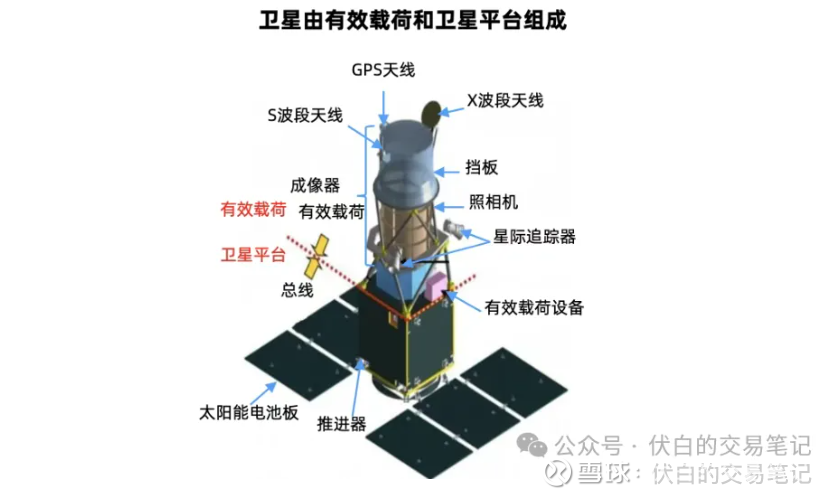 (2)载荷(任务系统):实现卫星任务,如通信、导航、遥感、科学、军事载荷。
