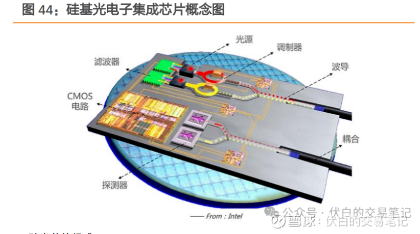 硅光技术是采用硅基材料作为介质,通过CMOS工艺将众多光电器件集成至同一芯片;可用于硅光模块、CPO交换机(硅光引擎+交换芯片)。