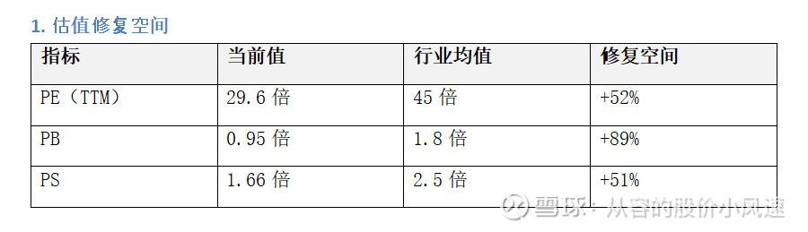 2. 估值修复:从当前0.95倍PB修复至行业均值1.8倍,存在89%空间