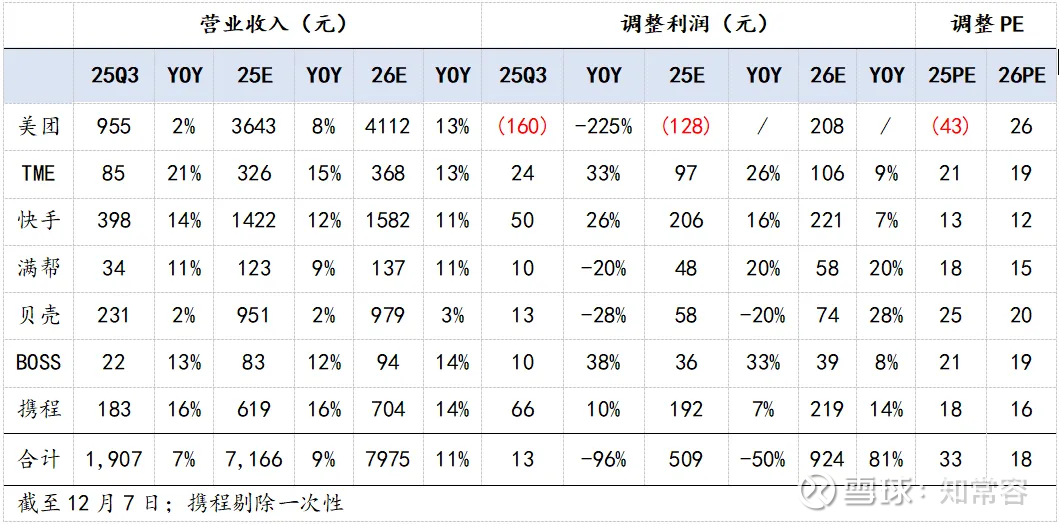 25Q3季度,基于财报表现,我们认为排序如下:BOSS直聘>携程>腾讯音乐>快手>满帮>贝壳>美团。