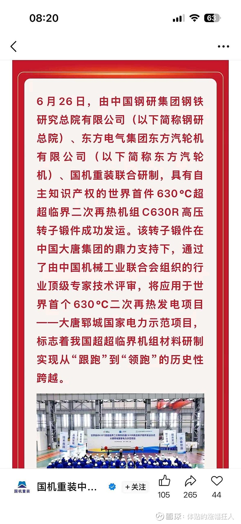 超碳一号,超临界发电$国机重装(SH601399)$ $东方电气(SH600875)$