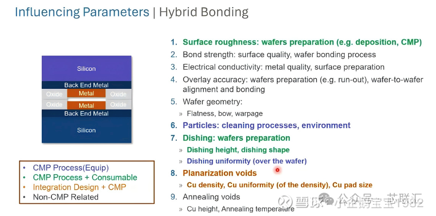从文档中对 Hybrid Bonding 影响参数的系统拆解可以看到: