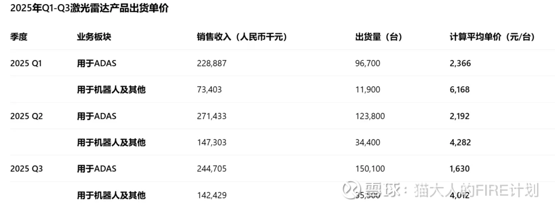 大家很多人担心的是激光雷达过去几年降价太快了,怕出货量暴增,但是单价暴跌,导致营收原地踏步,甚至类似速腾聚创Q3反而环比下滑的情况。