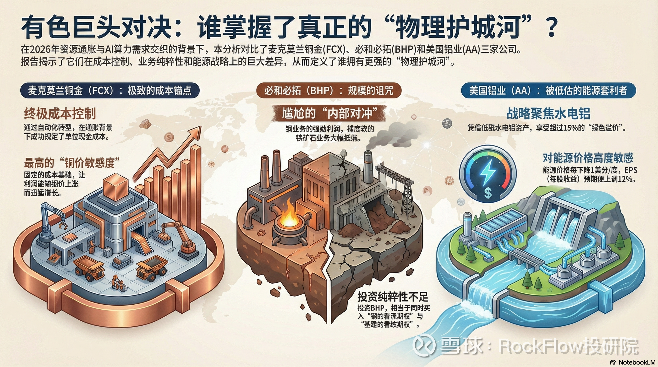 在 2026 年这个资源通胀与 AI 算力革命交织的特殊节点,投资有色金属不再是简单的“搏周期”。RockFlow 投研团队认为,我们需要深入理解巨头,寻找那些真正掌握“物理护城河”的 Alpha 机会。
