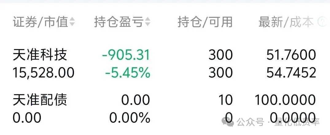 比如配售这个天准科技,小编前几周进场的买入,买入的300股,目前截至配债时亏了900,如果要回本,转债上市要连续几个涨停才行。