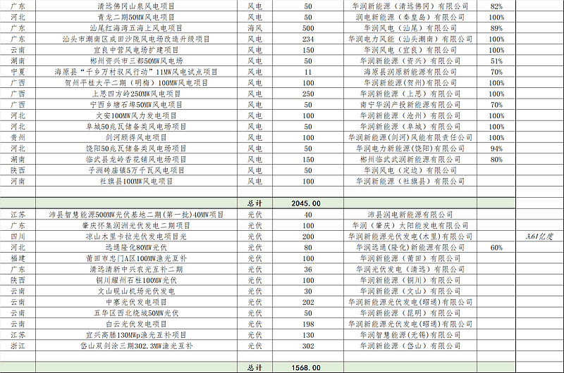 盘点一下华润今年新能源项目。体现了华润的调整能力。与其它电力央企相比,可以说是遥遥领先。