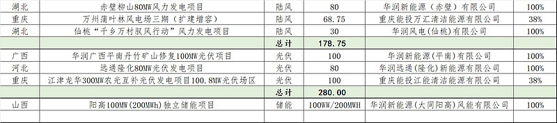 华润今年投产风光电项目应该是去年开工项目续建。今年开工项目,目前看快速萎缩:本部很少,参股的重庆能源有一些。