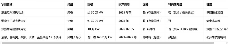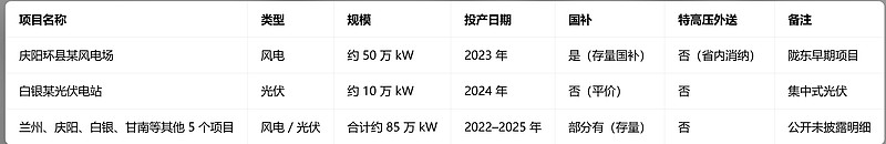 数据来自AI豆包。。。。。华电的甘肃项目,确实是多而且差。
