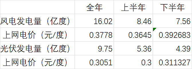 四。甘肃能源上下半年电量电价数据表
