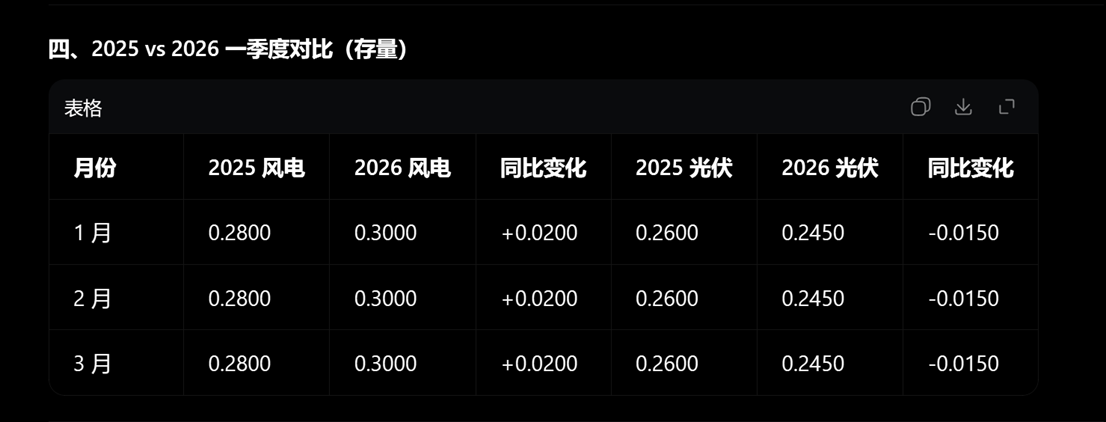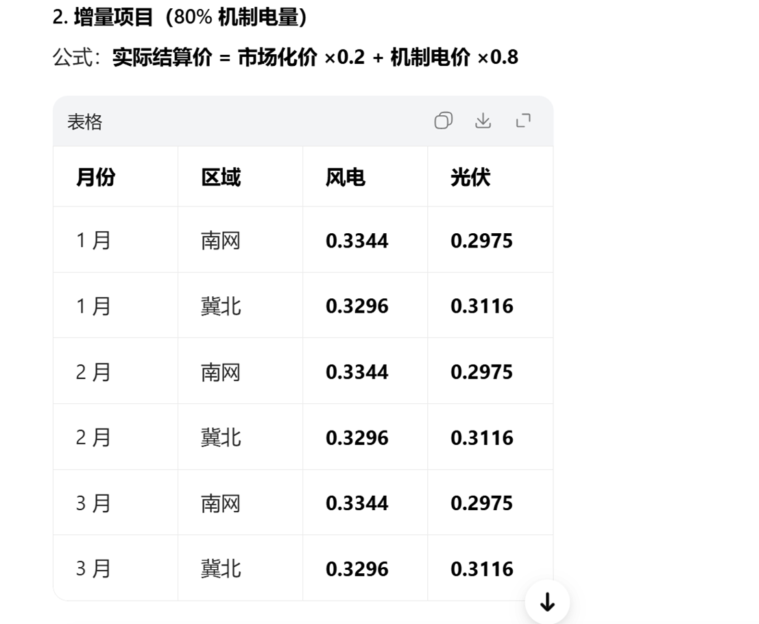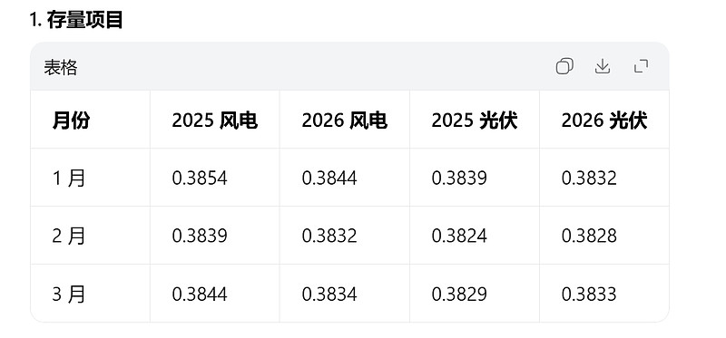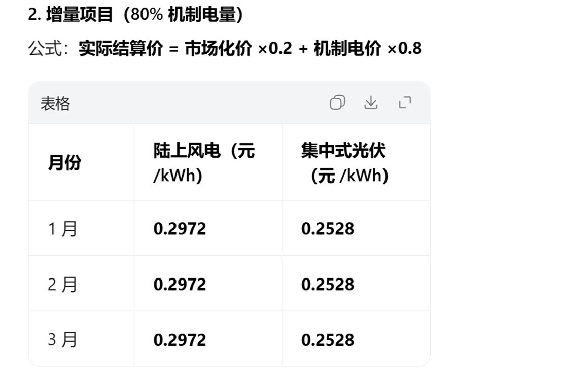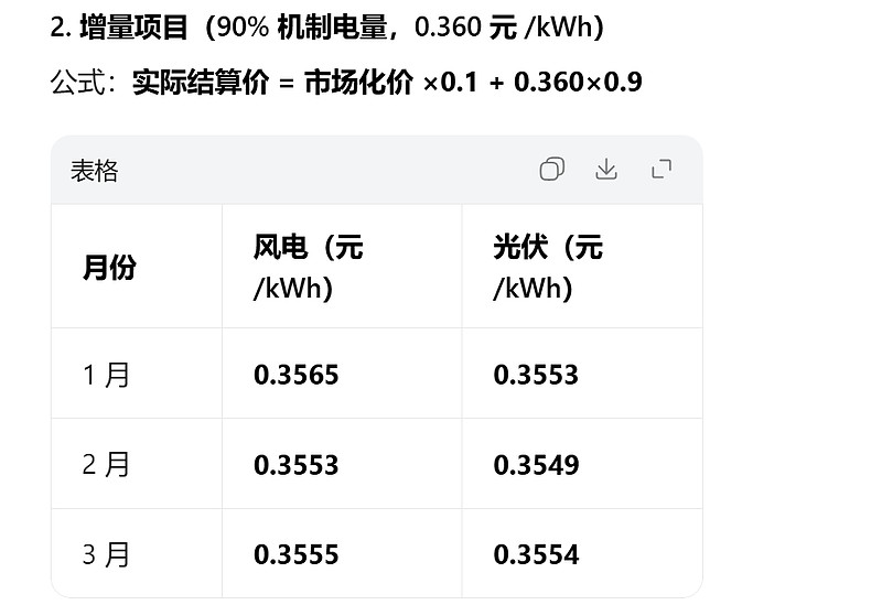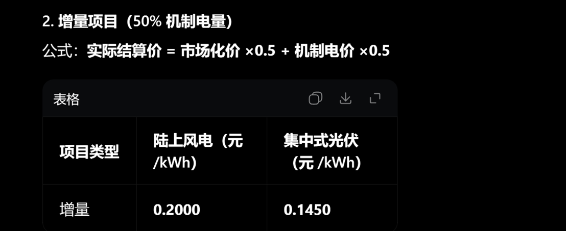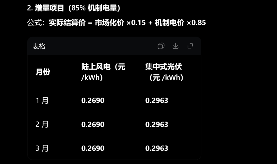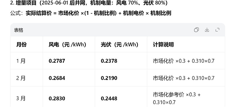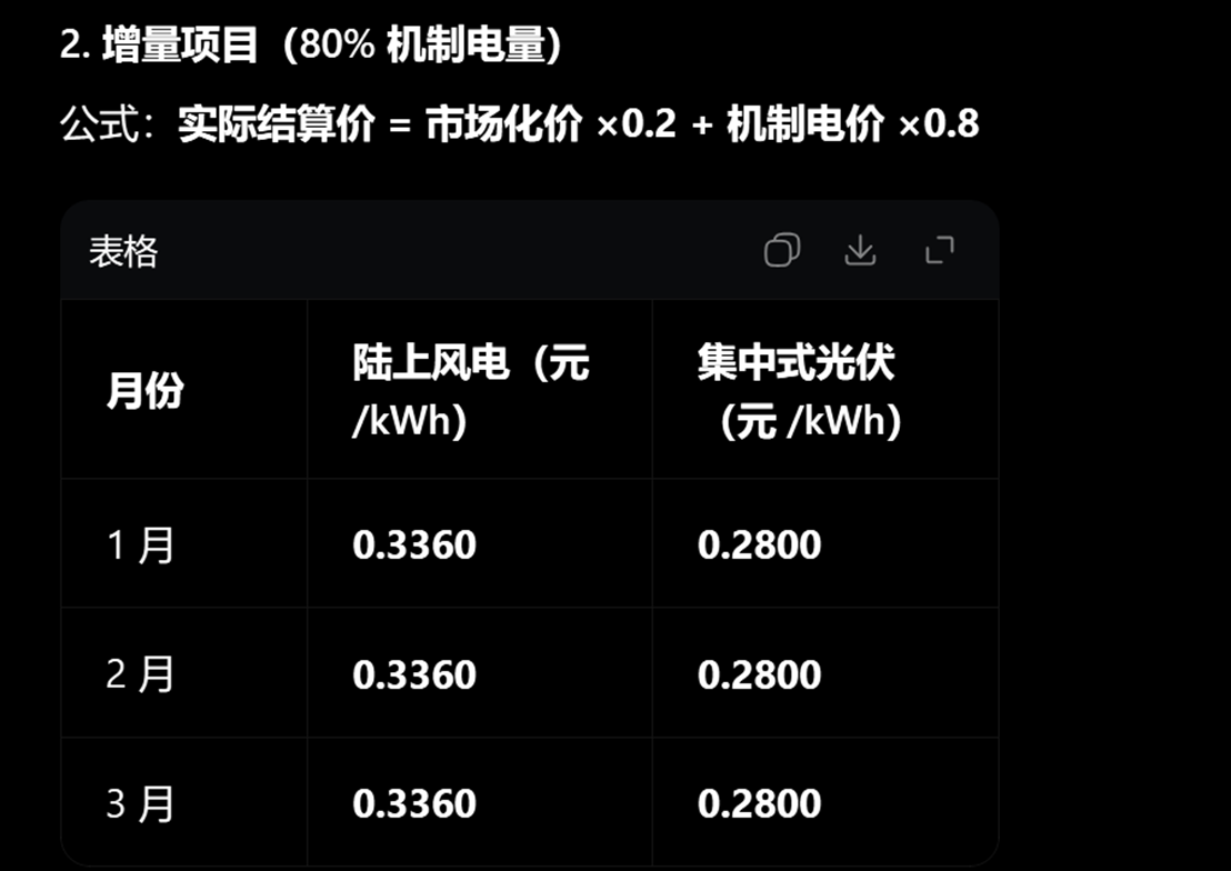 2. 增量项目:80%机制电价,风电0.304 元 /kWh、光伏0.276 元 /kWh。