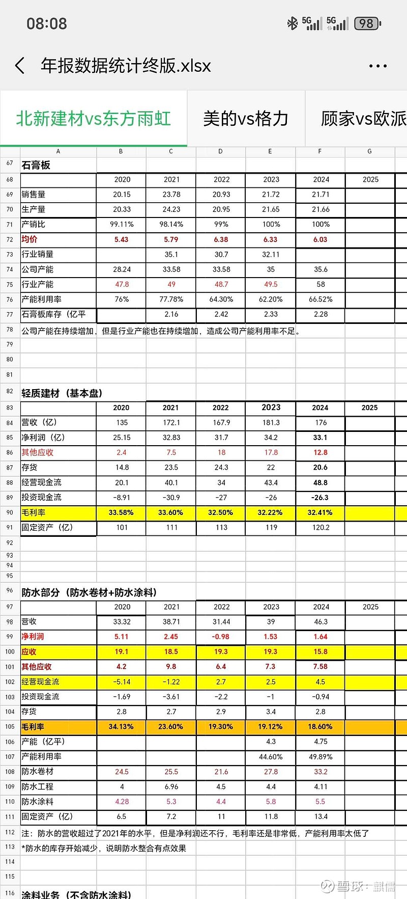 北新有60万吨的护面纸产能,可以满足80%的自给率,而母公司中建材还有30万吨产能。其他石膏板厂家都没有护面纸产能,那就必须外购,从这里可以看出来,其他厂家涨价需求更强烈。那同样的涨价幅度,北新毛利率提升空间更大。北新只需要定一个合理的价格,保证自己的毛利率恢复到24年,这样既可以压制其他厂家盈利能力(基本上很难赚钱),又能保证自己份额稳固。