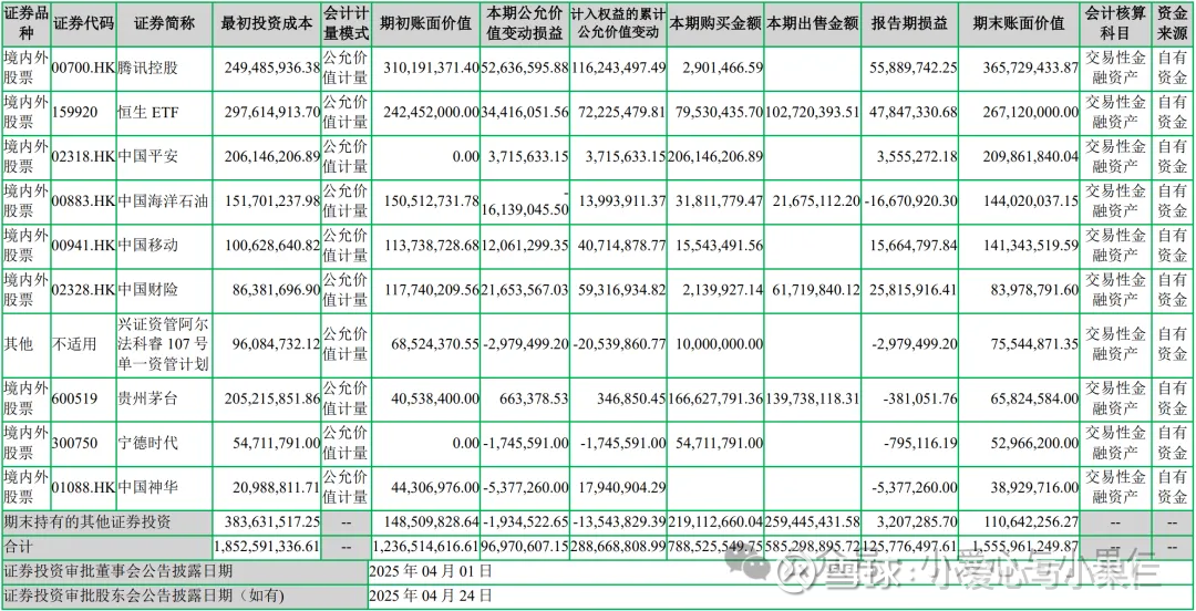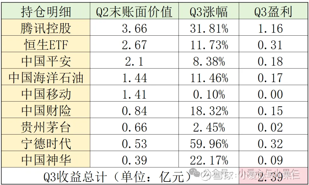 基于2025年半年报持仓明细及各标的在三季度的股价表现,我初步测算,其公允价值变动收益约达2.4亿元,是一笔非常可观的收益。