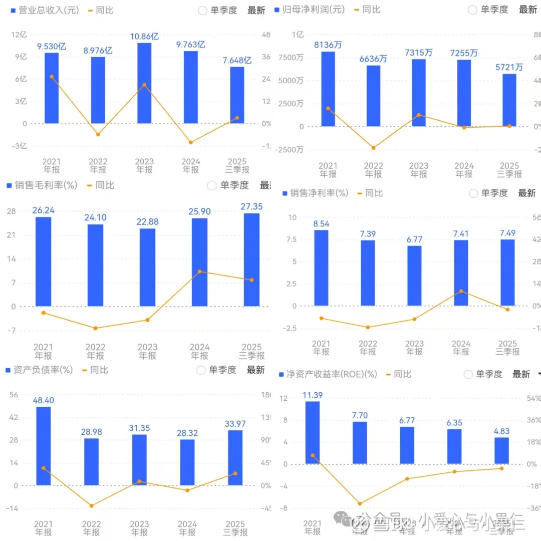 近期业绩: 2025年前三季度营收7.65亿元(+3.14%),净利润5721万元(+0.48%),增长平稳。值得注意的是,公司第三季度单季在营收微增的同时,出现‘增收不增利’现象,归母净利润与扣非净利润分别同比下降19.10%和31.46%,结合同期经营性现金流净额同比大幅下降,说明公司短期正面临一定的盈利质量与现金流压力。券商分析认为,这主要与销售回款周期延长、管理费用等支出大幅增加,以及下游需求波动导致的竞争加剧有关。