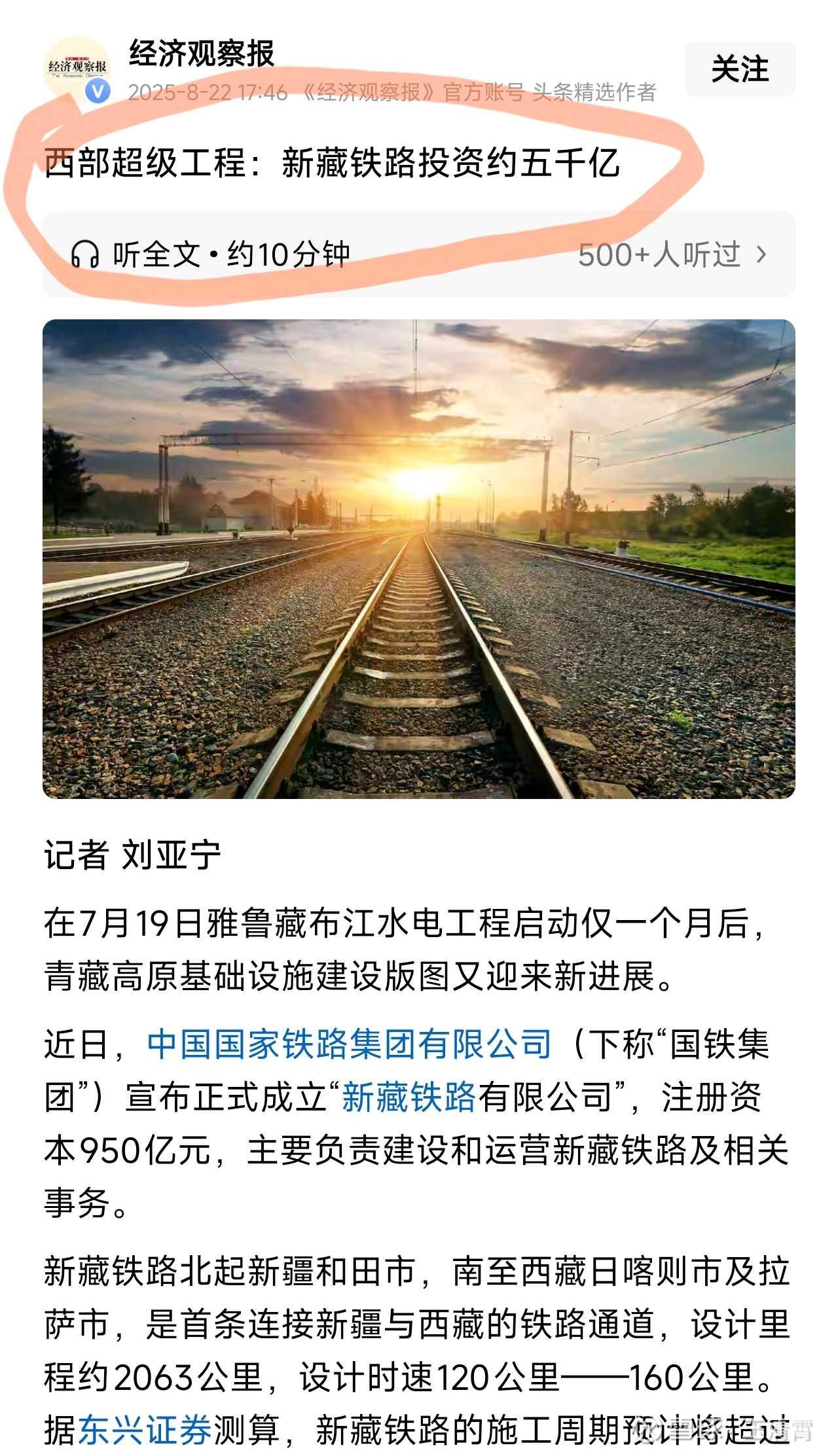 新疆2025年计划实施500个重点项目,总投资3.47万亿元(交通基建占1.21万亿元),公司作为新疆国资委旗下交通基建龙头,承担新藏铁路新疆段40%-50%土石方工程。区域政策倾斜+独家资质,巩固市场份额优势。