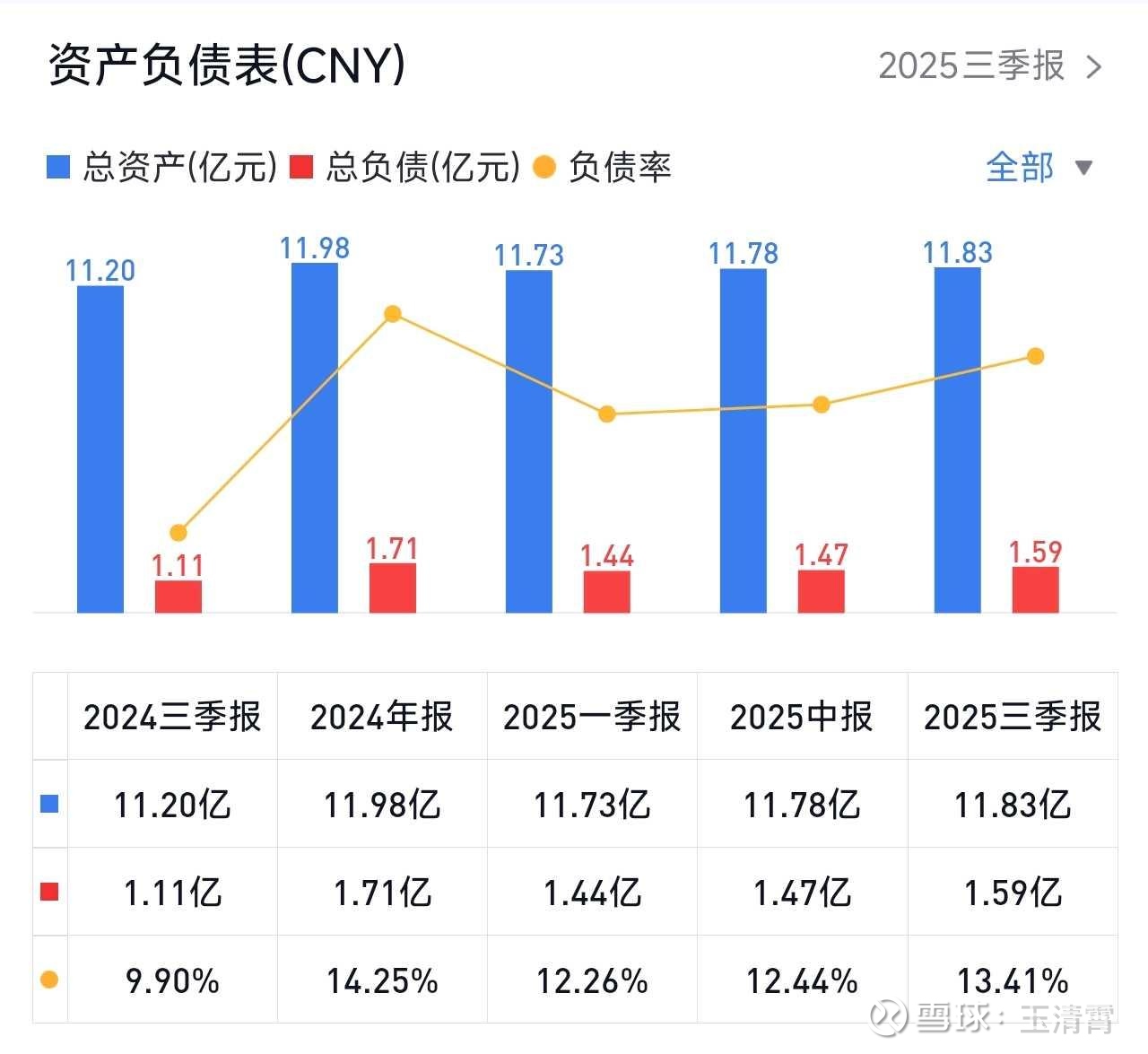 资产11.83亿,负债1.586亿,负债率13.41%。