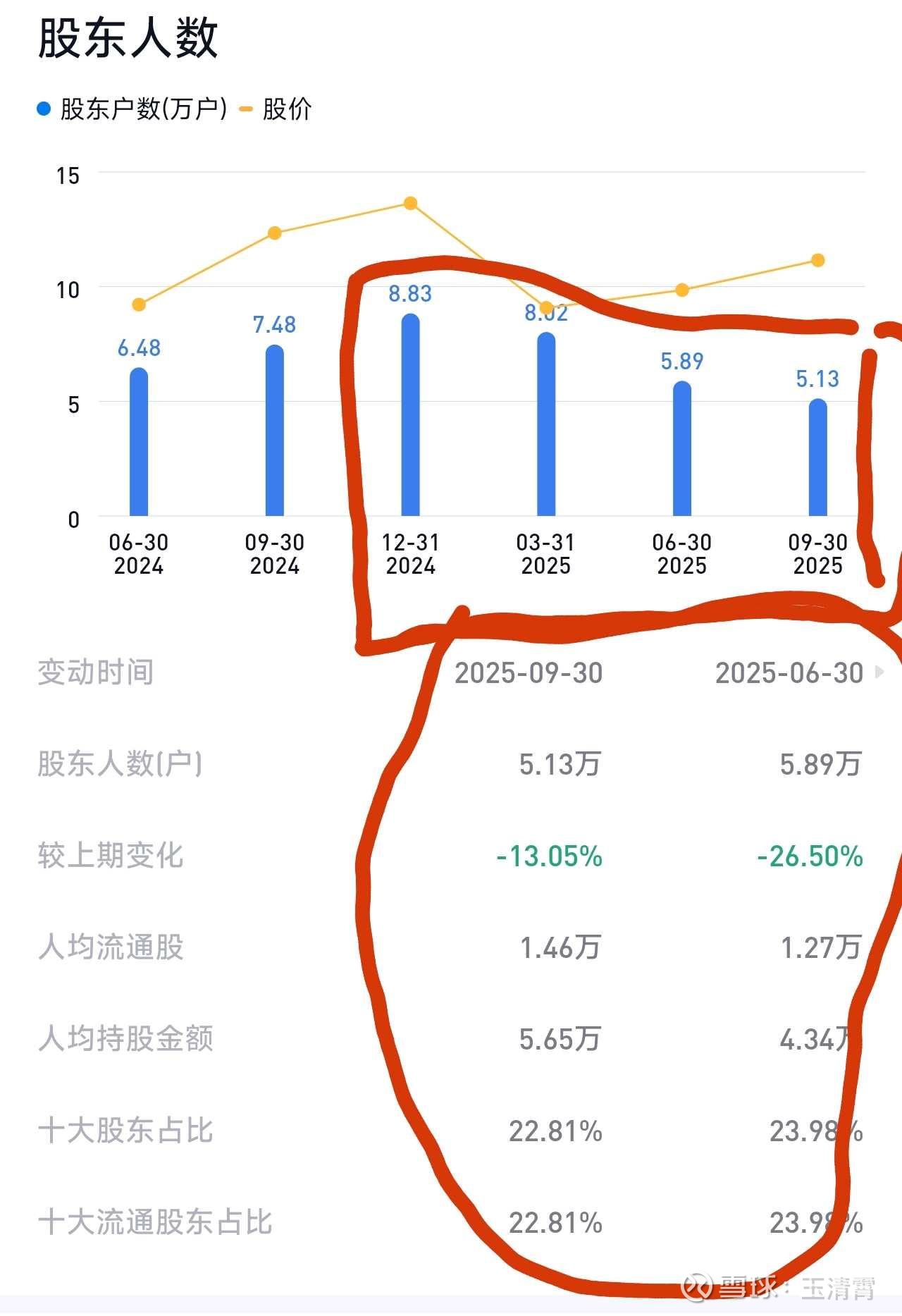 股东人数连续3期大幅度减少,筹码集中度高有大资金操盘。