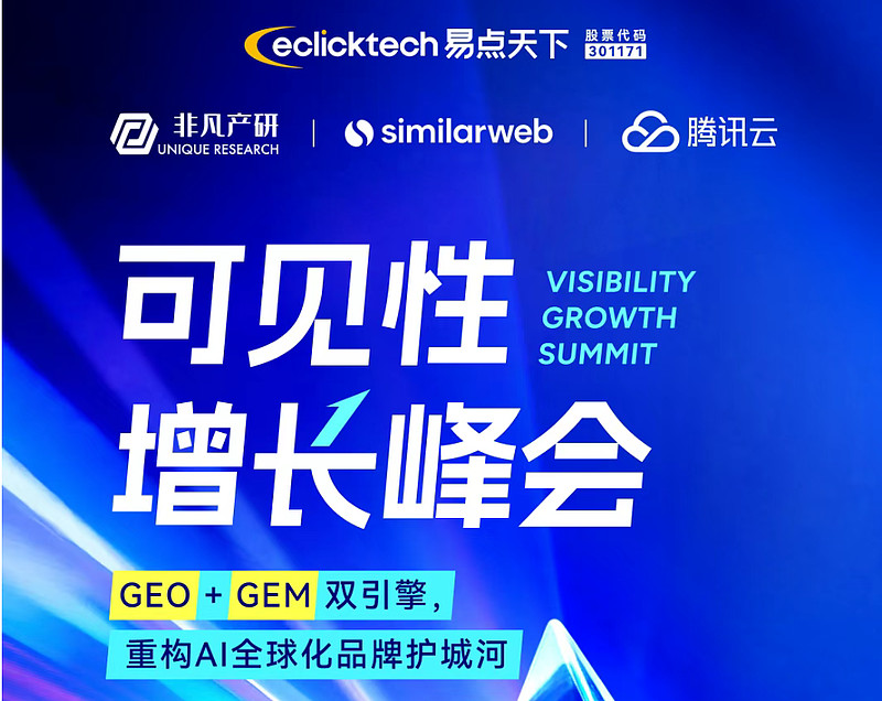 3月7日,由易点天下主办,非凡产研、Similarweb、腾讯云联合主办的可见性增长峰会将在深圳举办,携手AppLovin、Shopify、Moloco、impact.com、智谱AI、Kuse、EZsite AI、Cross Border Digital、扬帆出海、Quick Creator、英文SEO实战派等卓越团队,一场关于「GEO+GEM双引擎,重构AI全球化品牌护城河」的实战推演,即将拉开帷幕。