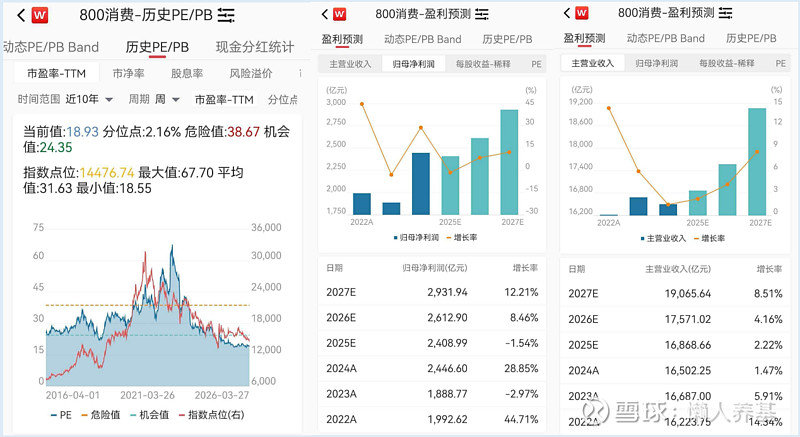 根据万得一致预测,消费板块2026-2027年营收增速4.16%和8.51%,净利润增速8.46%和12.21%。表面上看,这似乎出现了"困境反转"信号,但细究之下存在隐忧。