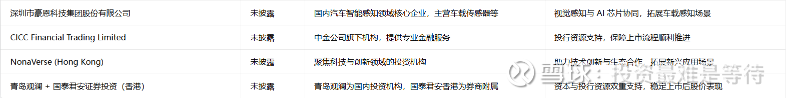 (1)虞仁荣与豪威集团。毫无疑问,虞仁荣与豪威集团是国内半导体行业扛把子级存在,相当专业,虞仁荣个人2020年即投资了爱芯元智,此次IPO豪威集团公告拟出资5000万美元参与基石投资,最终投出3500万美元。在爱芯元智这个领域,虞仁荣毫无疑问是专业的。相信专业的力量。