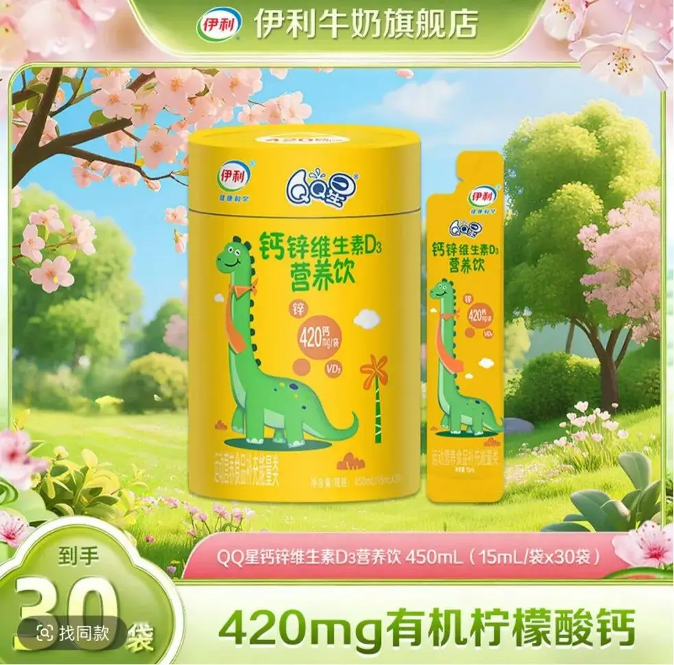伊利健康科学QQ星钙锌维生素D3营养饮上架抖音平台的时间:2026年3月10日。此时春光正好,补钙正合时。