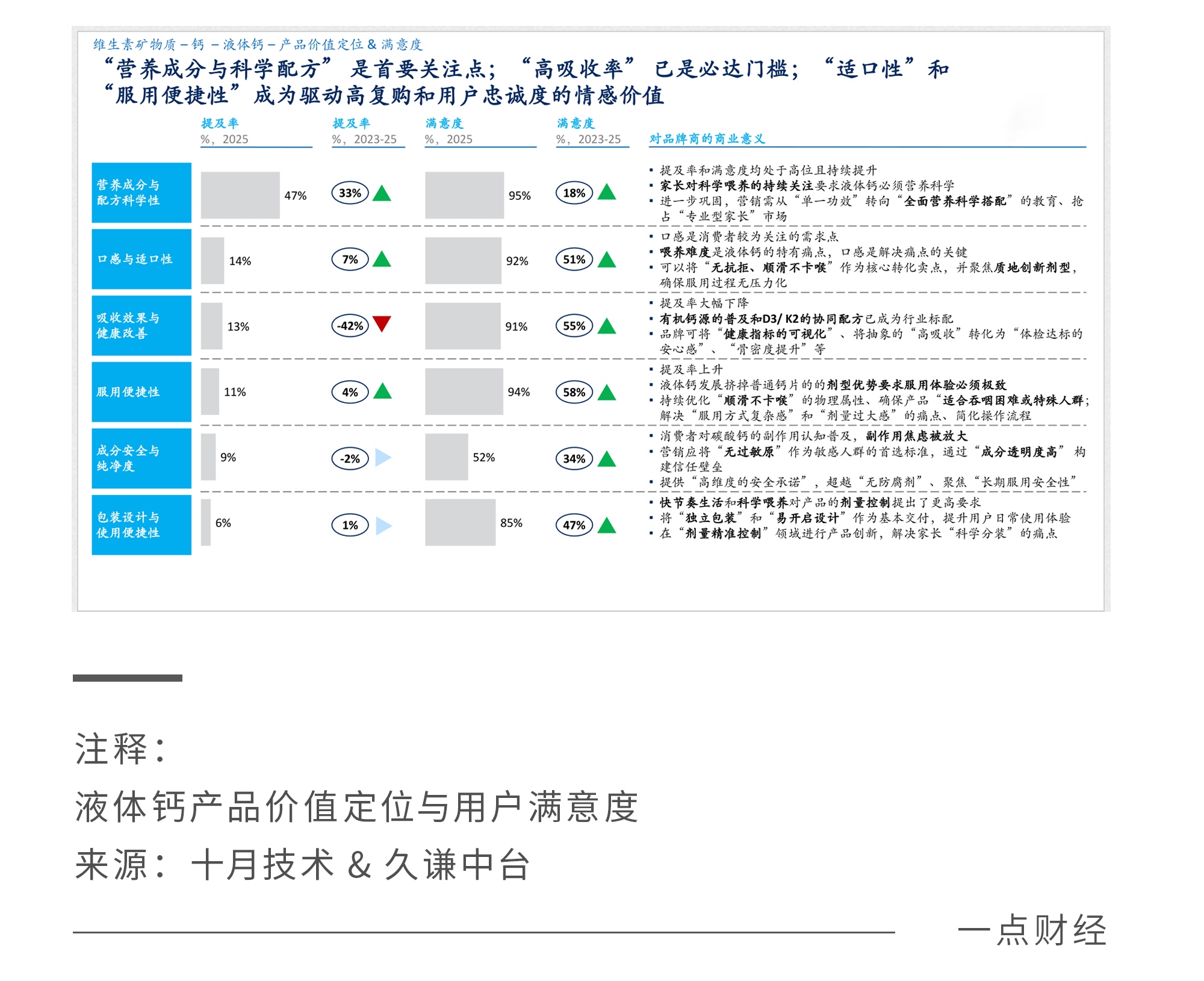 根据《2023—2025年功能食品品类趋势与创新洞察变化报告》,液体钙行业正从“基础功效”向“技术图腾”的范式转移。健康“玄学时代”已结束,消费者变身追捧“科技+科学配方”的“成分党科学家”。伊利提前洞察消费趋势,想消费者所想,“人性化”选择从直接喝的液体钙入局,以伊利健康科学QQ星钙锌维生素D3营养饮破解痛点,一击即中。