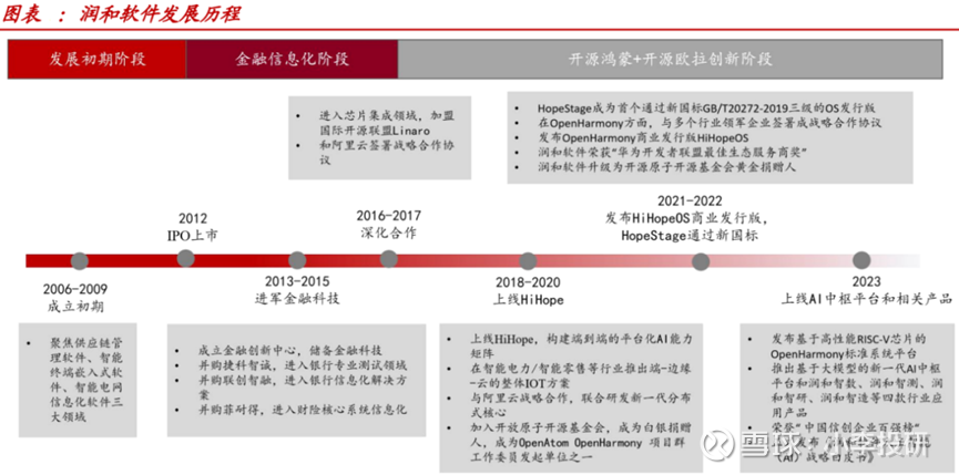 比如操作系统产品方面。公司自2020年起持续创新,推出润和企业级操作系统;2024年,公司基于开源欧拉24.03LTS推出首个AI原生操作系统HopeOSV24。