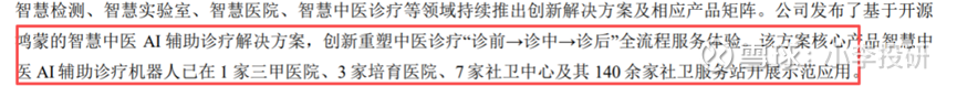 在医疗行业。公司发布了基于OpenHarmony的智慧中医AI辅助诊疗,重塑中医诊疗“诊前→诊中→诊后”服务体验。且智慧中医AI辅助诊疗机器人,已在1家三甲医院、3家培育医院、7家社卫中心及其140余家社卫服务站开展示范应用。